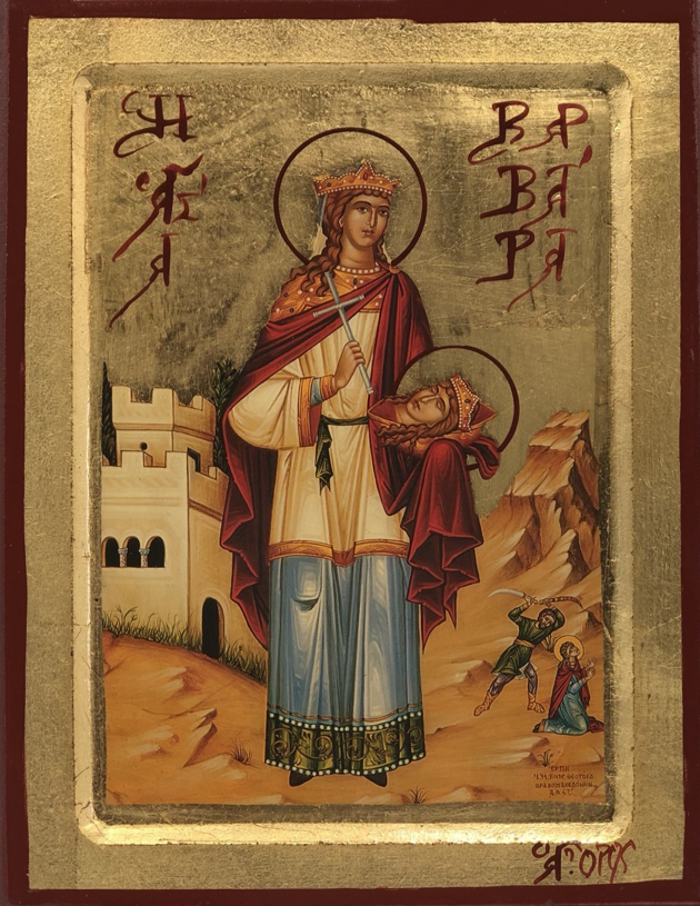 Η Αγία Βαρβάρα έζησε τον 3ο αιώνα επί Ρωμαίου αυτοκράτορα Μαξιμιανού, στη Νικομήδεια της Μικράς Ασίας. Η παράδοση της Ρωμαιοκαθολικής Εκκλησίας αναφέρει ότι έζησε στην περιοχή της Τοσκάνης. Ήταν μοναχοκόρη του πλούσιου ειδωλολάτρη Διόσκουρου και από νεαρή ηλικία ασπάστηκε τον Χριστιανισμό, παρά τις αντίθετες προσπάθειες του πατέρα της. Η άρνησή της να παντρευτεί έναν ειδωλολάτρη εξόργισε τον Διόσκουρο, ο οποίος την κατήγγειλε στις ρωμαϊκές αρχές για τη χριστιανική της πίστη. Η Βαρβάρα βασανίστηκε και διαπομπεύτηκε γυμνή, για να αποκεφαλιστεί τελικά από το χέρι του πατέρα της. Τα λείψανα της Αγίας Βαρβάρας βρίσκονται σήμερα στον Καθεδρικό Ναό του Αγίου Βλαδιμήρου στο Κίεβο της Ουκρανίας.